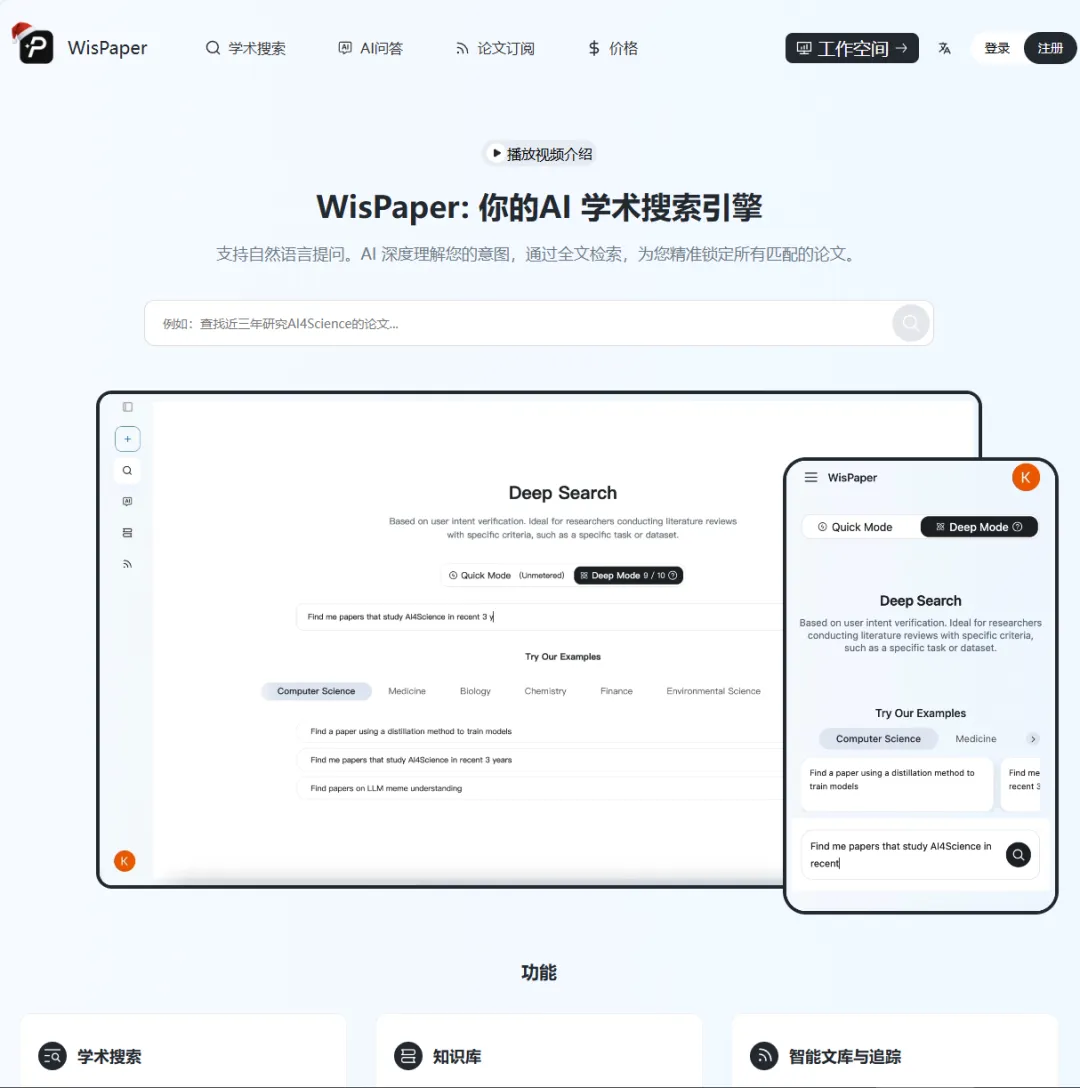 对于正在写论文或查阅文献的我们来说,WisPaper 专注于“学术科研”领域。它的核心优势在于“精准定位”和“深度速读”。
