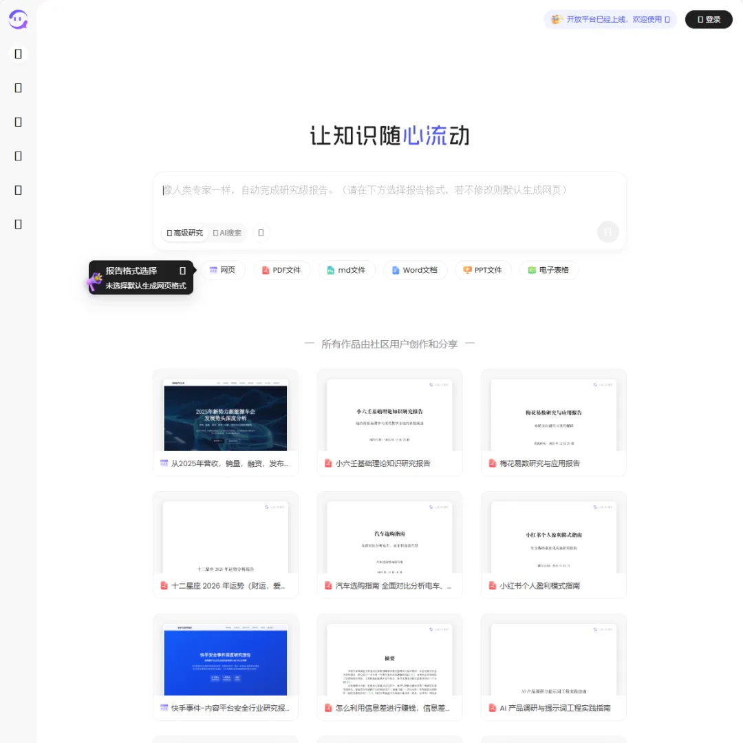 它的核心功能是“高级研究模式”。当我们面临庞大且模糊的课题(比如“2026 年银发经济的细分赛道机会”)时,不需要手动搜索几十个关键词。只需输入指令,它就能自动拆解任务、联网检索并阅读大量行业报告,最终生成一份结构严谨、数据详实的深度研报。