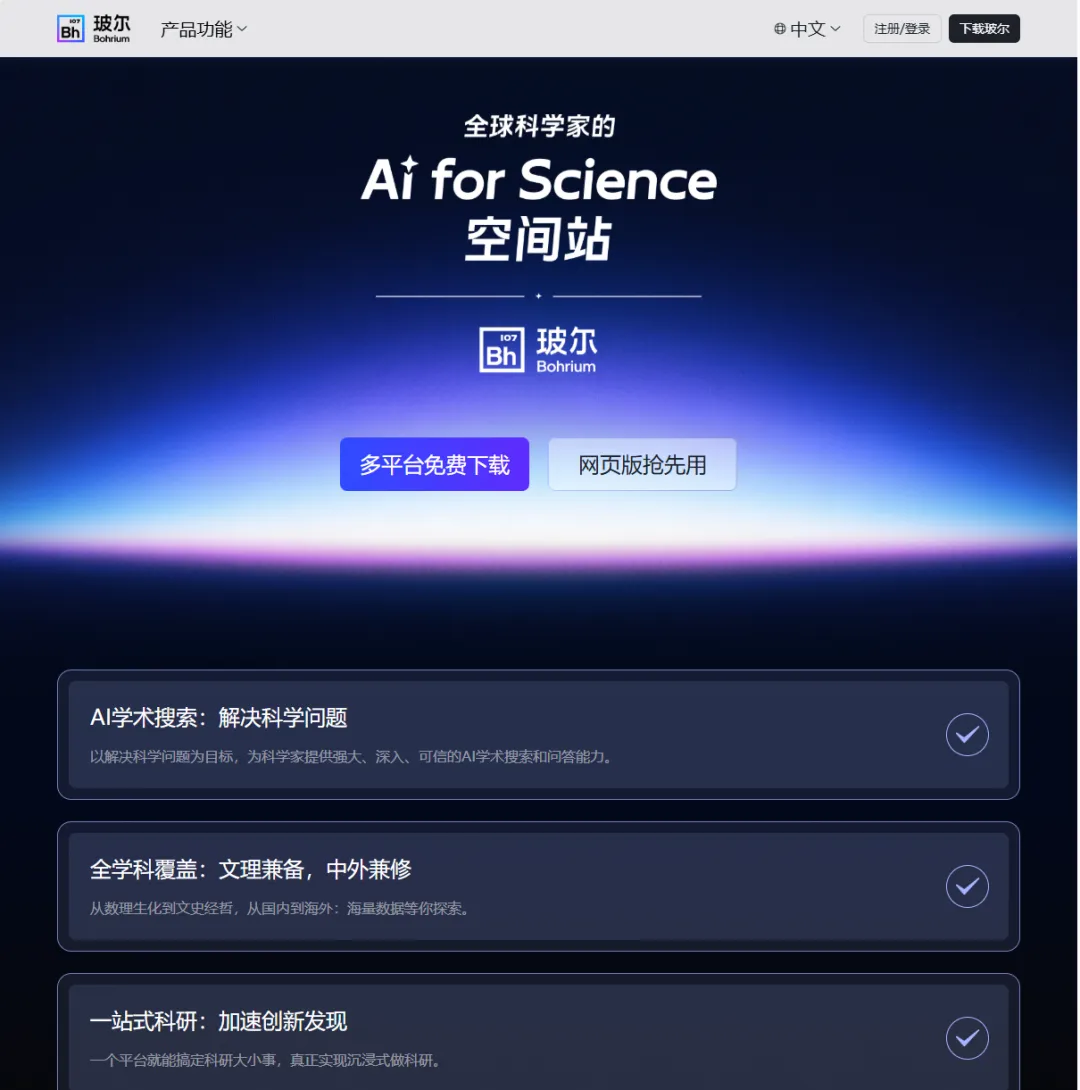 对于从事科研、仿真或 AI 模型训练的理工科同学来说,Bohrium(波尔)由深势科技 (DP Technology) 开发,专注于“AI for Science”领域。