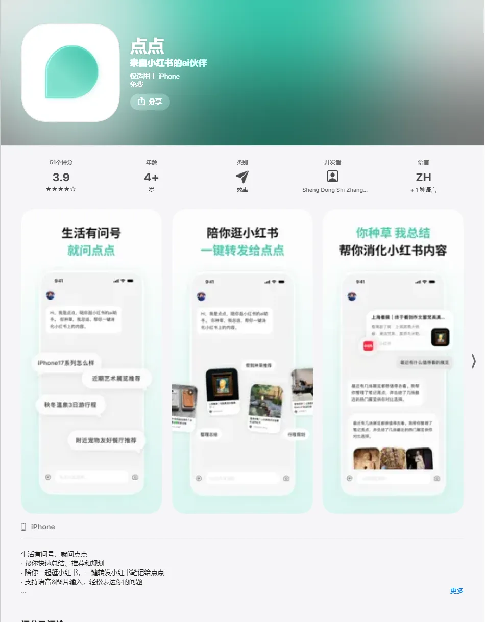 对于依赖小红书做决策的用户来说,点点由小红书官方团队开发,最大的优势在于它背靠平台海量的真实用户经验数据。