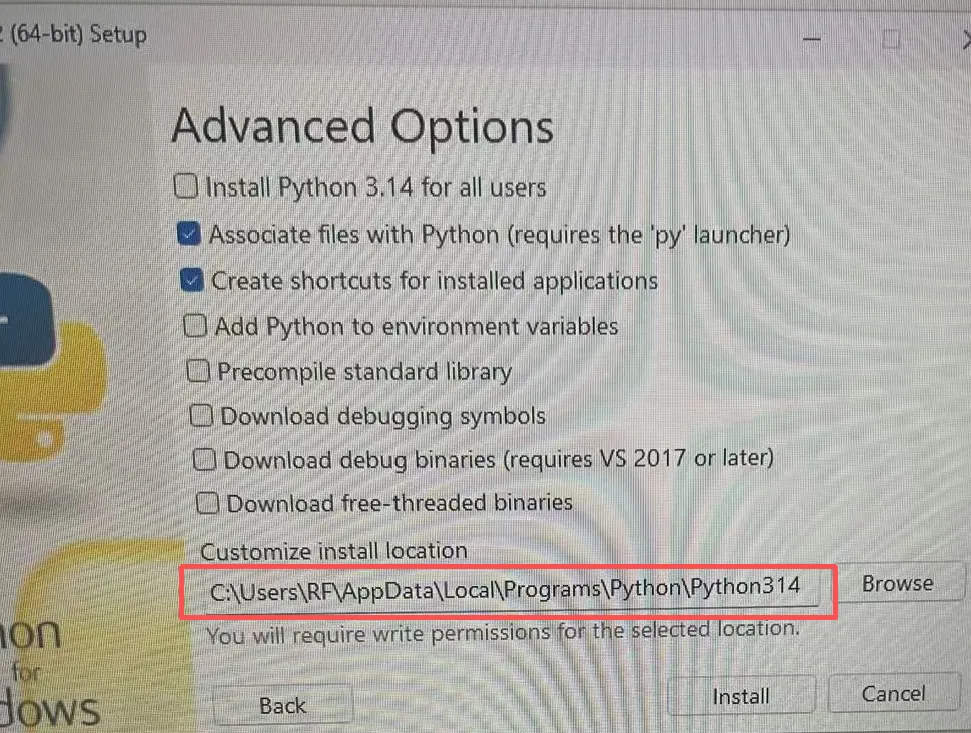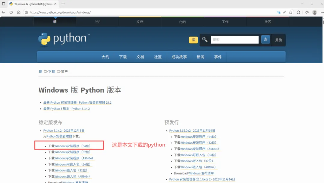 首先,根据上述“有关说明”中的python 3.14下载地址,下载python 3.14,下载的界面如图1所示。下载完毕后,点击安装。需要注意,要记住python的安装位置,所以本文采用的是自行安装(后续的打勾选择直接默认就可以了),如图2所示。安装完成后,在图2中的位置中运行cmd。检查python的版本等相关情况,如图3。然后,输入exit(),退出当前模式。