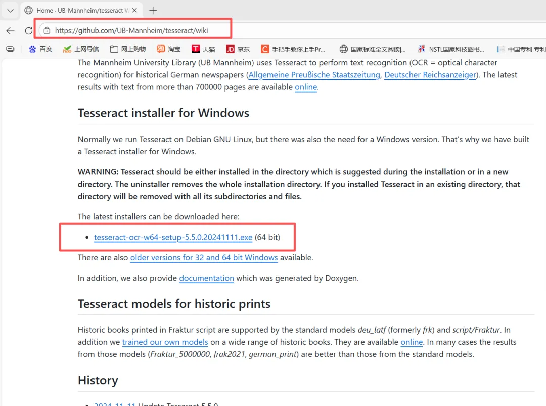 接着,图像识别模块tesseract的下载,打开上文“有关说明”中的tesseract下载链接,选择如图4所示的exe文件进行下载。