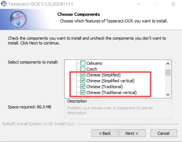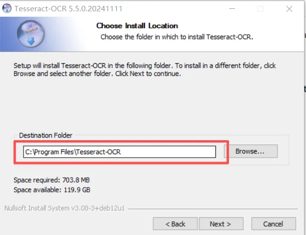 之后请记住tesseract的安装位置,在后续脚本中需要调用,如图6所示,本文中tesseract安装在C:\Program Files\Tesseract-OCR\tesseract.exe