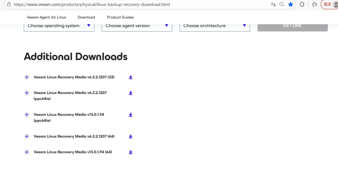 恢复介质下载链接:https://www.veeam.com/products/physical/linux-backup-recovery-download.html