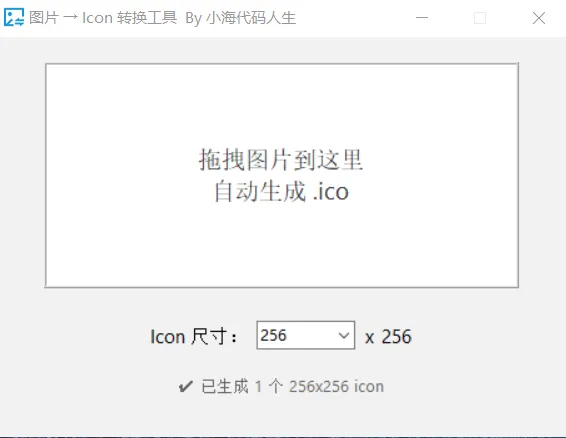 拖拽即可生成.ico,支持多尺寸(16~256),支持多图片格式(PNG / JPG / BMP / WEBP),启动快、不占资源,不需要任何额外软件,可以快速上手!
