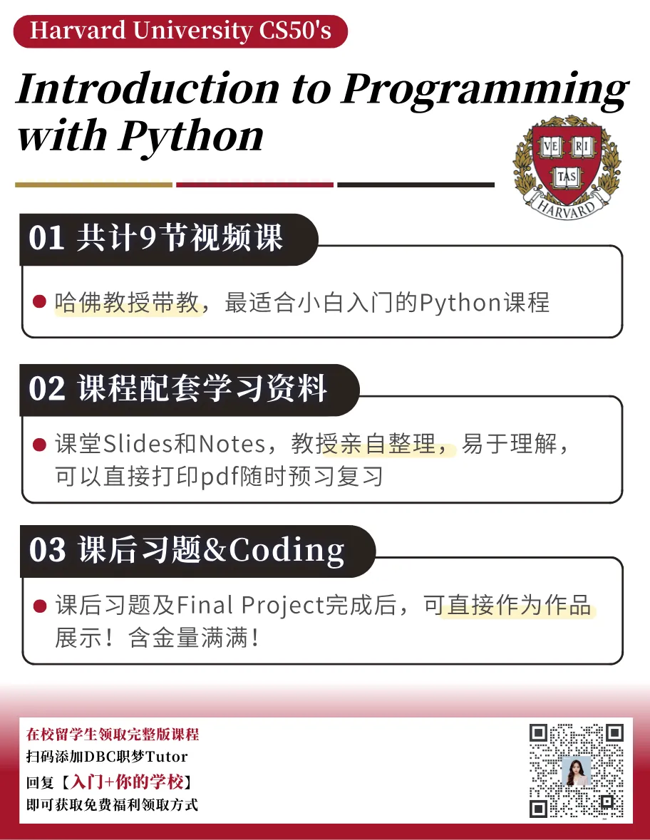 这个哈佛全套Python课程礼包都能助你轻松拿下Python,成为金融、咨询、科技等各行业疯抢的高薪人才💪🏻