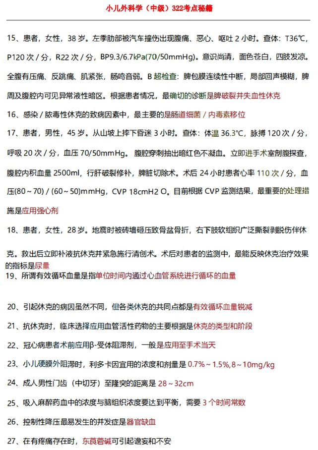 以上是小儿外科学中级[代码322]考前四页纸部分精华内容节选完整版领取如下: