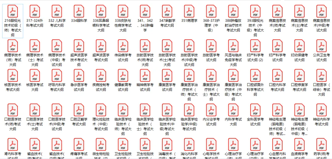 卫生初中级职称考试大纲(目录上的专业都有,详情看目录)
