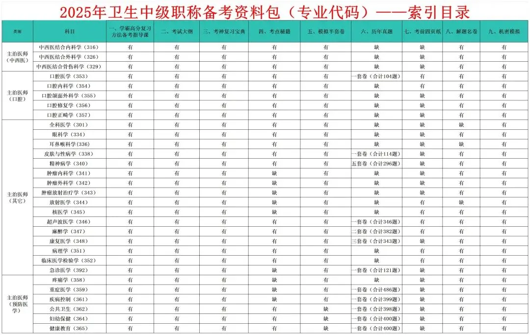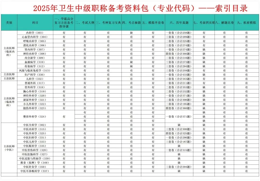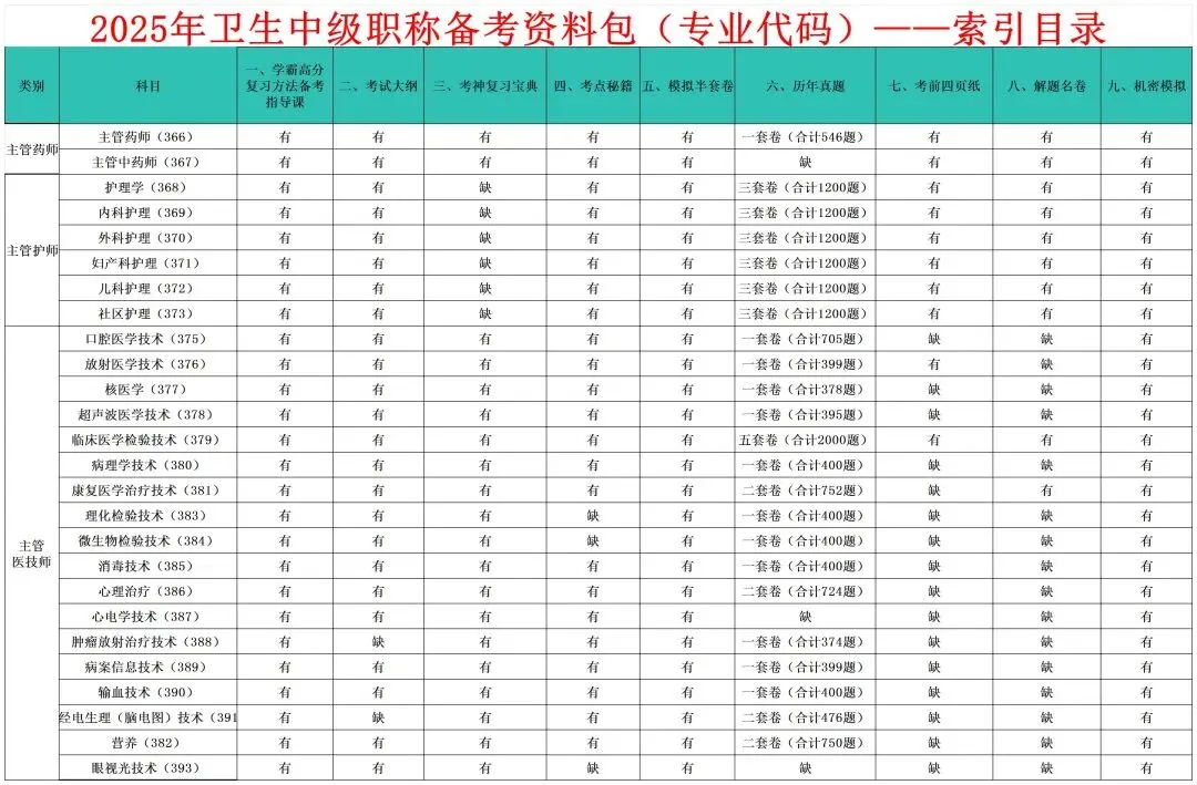 2025年卫生中级职称备考资料包目录及明细