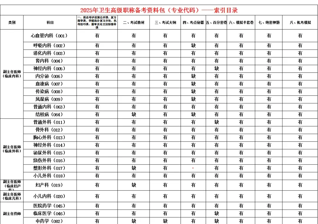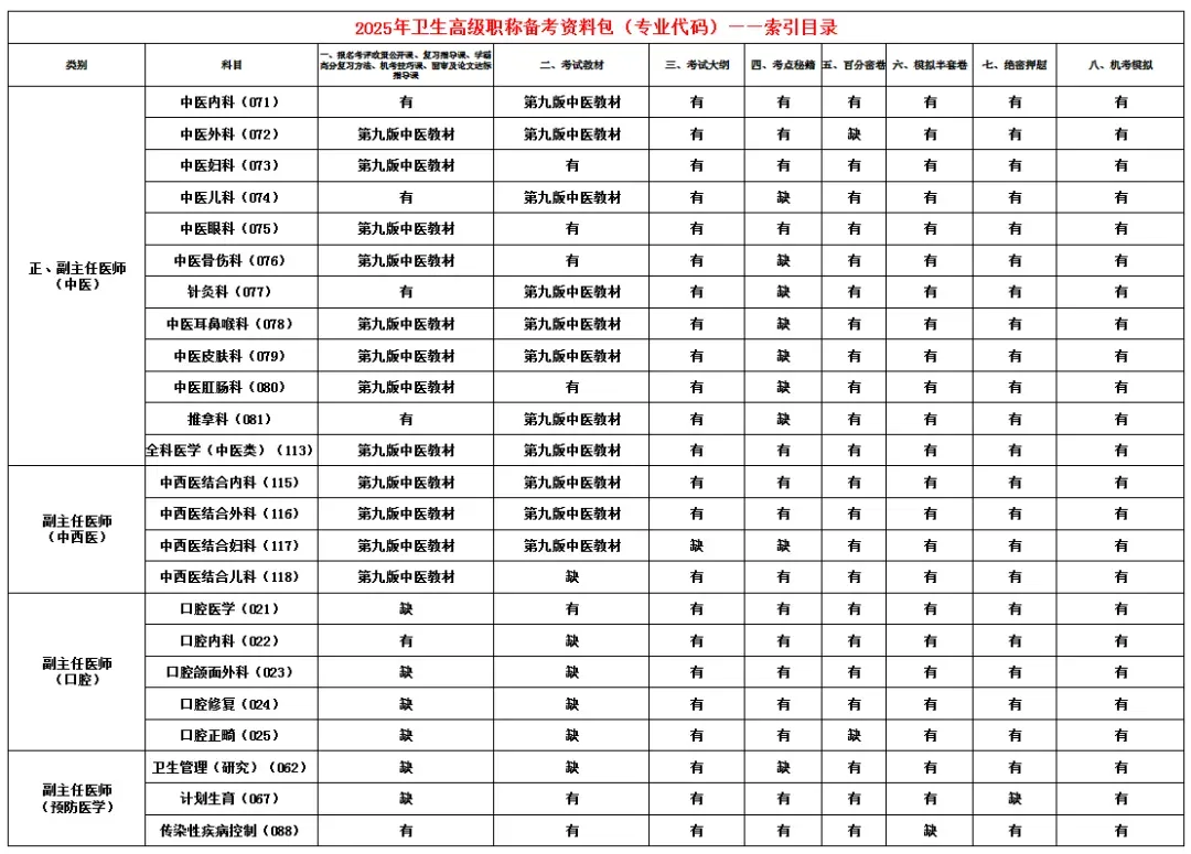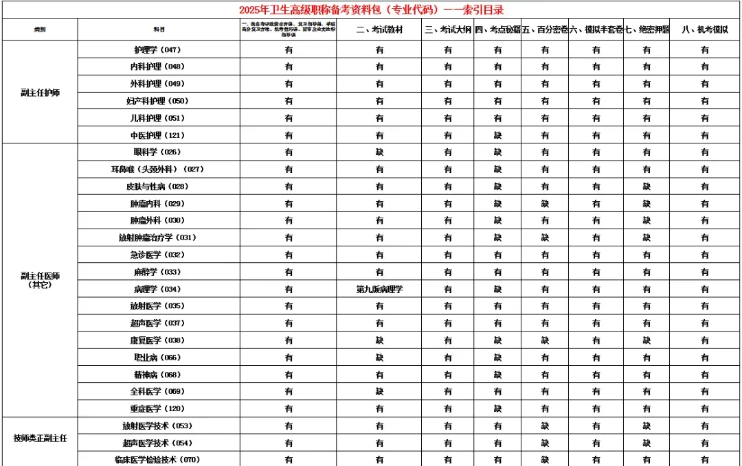 2025年卫生高级职称备考资料包目录及明细