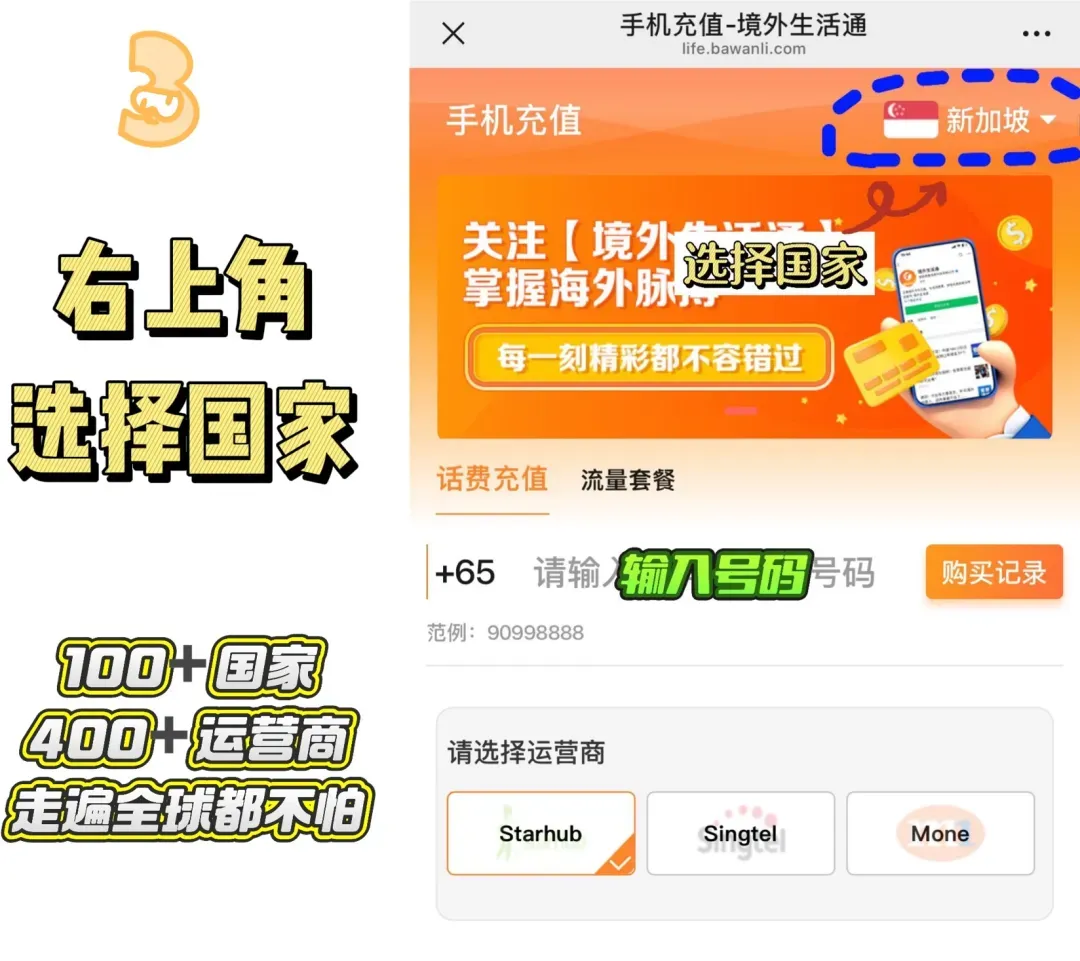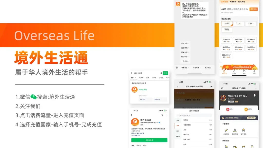 境外生活通提供全球100+国家及地区手机话费流量充值服务平台,支持500多家运营商。为在海外的中国人提供最优质的24小时线上充值服务。