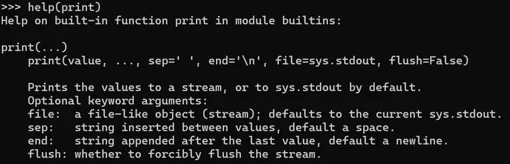 看到了吧,file 默认值为 sys.stdout。这个 stdout 就是标准输出(Standard Output)的简写,也就是系统命令行。下面,尝试在 Python 命令行下输入如下代码: