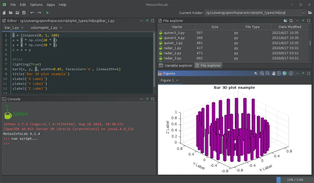 通过MobaXterm连接曙光派高性能计算机并运行MeteoInfoLab绘制三维图: