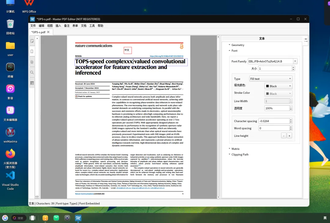 我在OpenKylin(安装包为deb,以上Master PDF Editor界面都是OpenKylin)和OpenEuler 24.03(安装包为rpm,如下图所示)系统的Gnome桌面中测试过Master PDF Editor v4.3.89