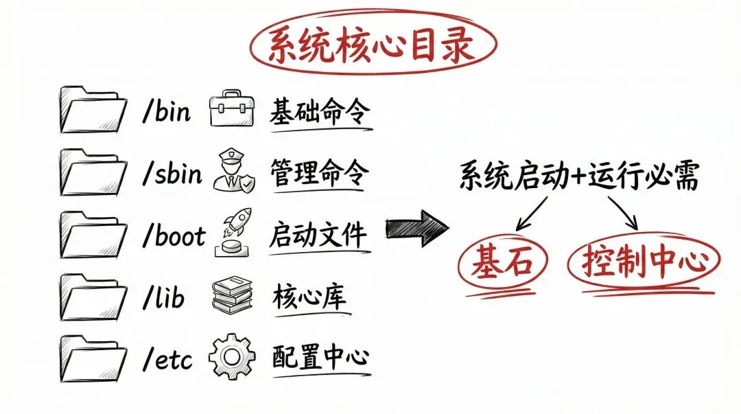 那么,在这棵统一的大树下,各个主要目录都有其明确且固定的用途。下面,我们按照逻辑顺序,逐一讲解最重要的那些目录。