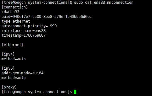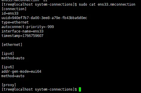 查看当前激活连接的uuid,确实是dhcp的配置。