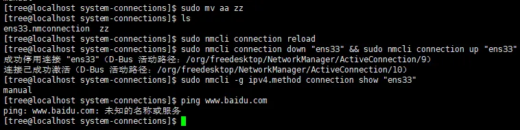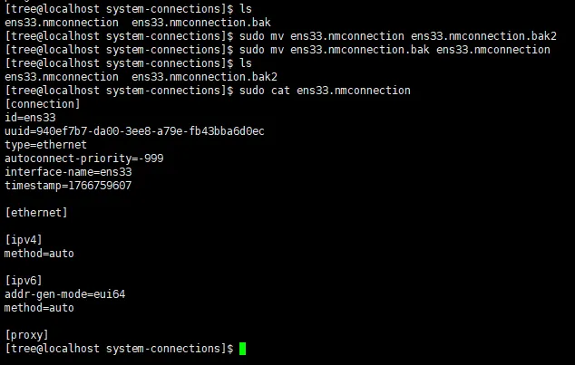 之前的静态IP设置(如/etc/NetworkManager/system-connections/中的备份文件)未被完全覆盖。好吧,竟然不能备份?