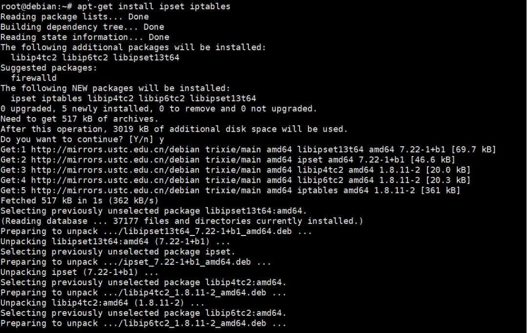 这些国外的IP,不停的在尝试ssh的密码,像苍蝇那么令人恶心。一般这种情况,多数是用安全组配置IP白名单,但实际用起来并不省心,维护白名单太繁琐了,特别是一些不重要的测试环境,也没必要动用安全组。做为顶(niu)尖(ma)的运维工程师,不妨试试更高效的方案:用iptables+动态IP库,自动同步国内IP段并精准放行,从源头阻断老外的ip,巴适!整体思路就是:利用APNIC官方IP数据库获取最新国内的IP段,通过ipset工具批量管理IP集合,再结合iptables防火墙配置访问规则。使用脚本定时任务实现自动化,掂过碌蔗!下面开干,我这里还是以debian为栗子(糖炒板栗),并且是root用户:apt-get install ipset iptables
