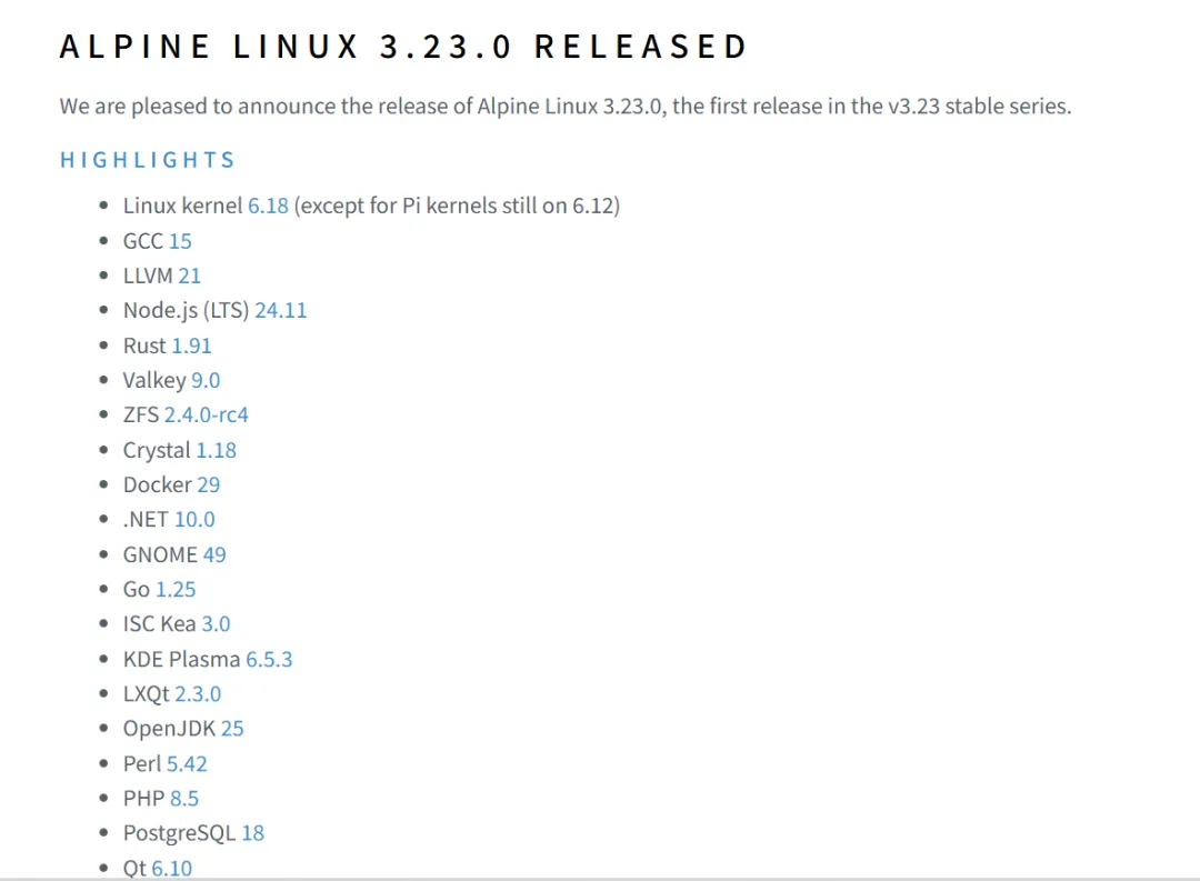 Alpine Linux 3.23 正式发布!