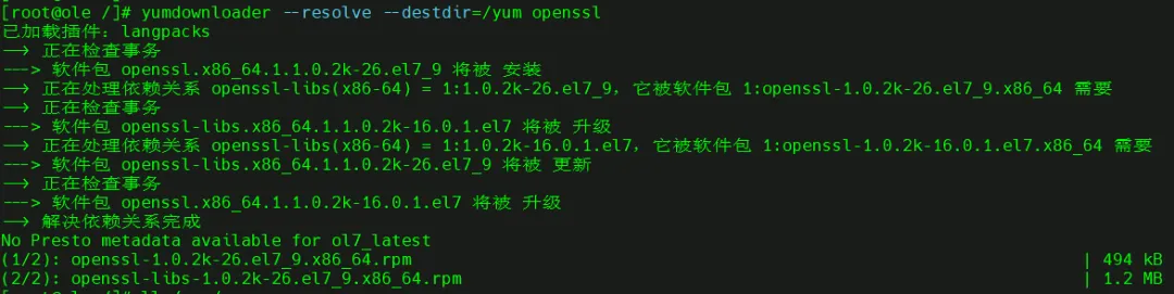 注:/yum 目录在方法一中已创建,此处略,没有请自行创建--destdir #目标目录(默认为当前目录)--resolve #解析依赖项并下载所需的软件包