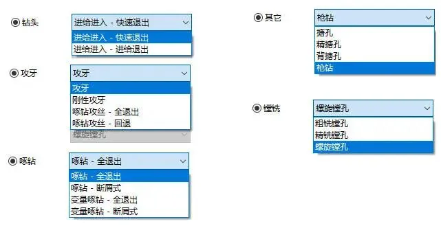 GibbsCAM软件针对钻孔刀具提供了窗口化参数设置,根据钻孔刀具类型进行划分。GibbsCAM软件钻孔编程界面简单易使用,所有参数在一个界面中,只需要进行极其简单的参数设置即可实现钻孔编程操作。GibbsCAM软件钻孔可以支持直接使用CAD图纸也可以使用带3D特征的模型文件,具体使用方式可以根据客户的使用习惯。