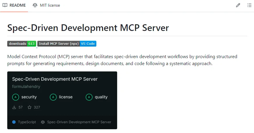 mcp-server-spec-driven-development | 中等 | 依赖AI IDE | 有 | 中型团队 |