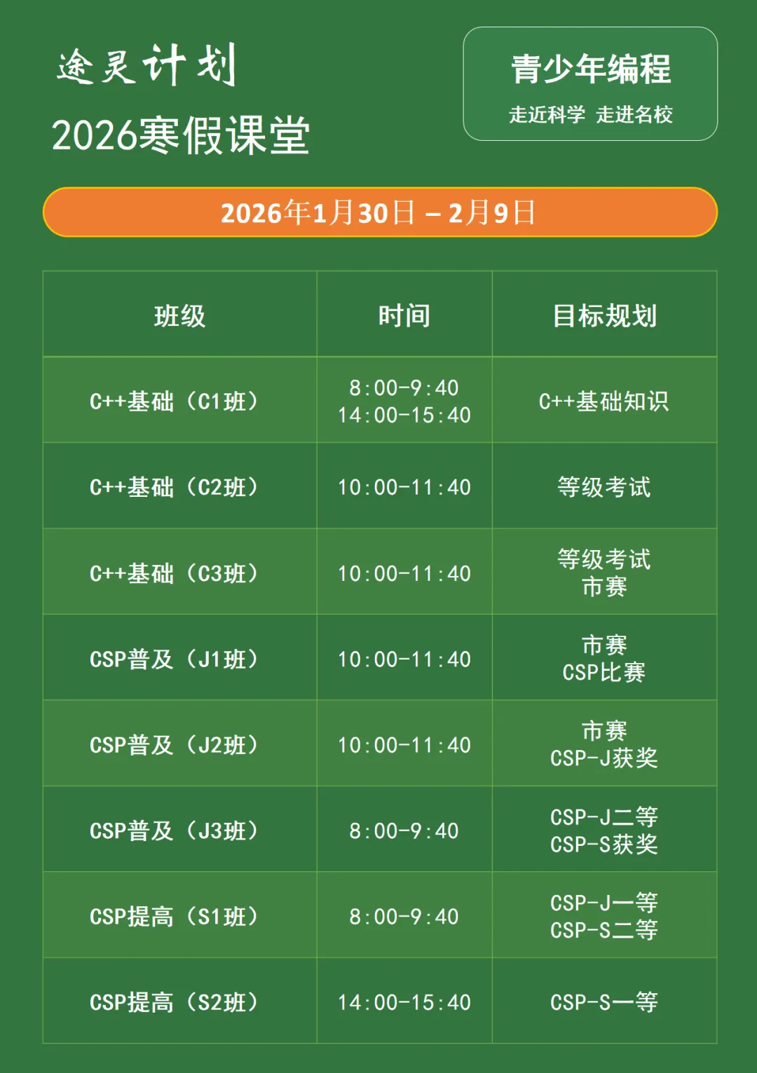 「2026 寒假课表」