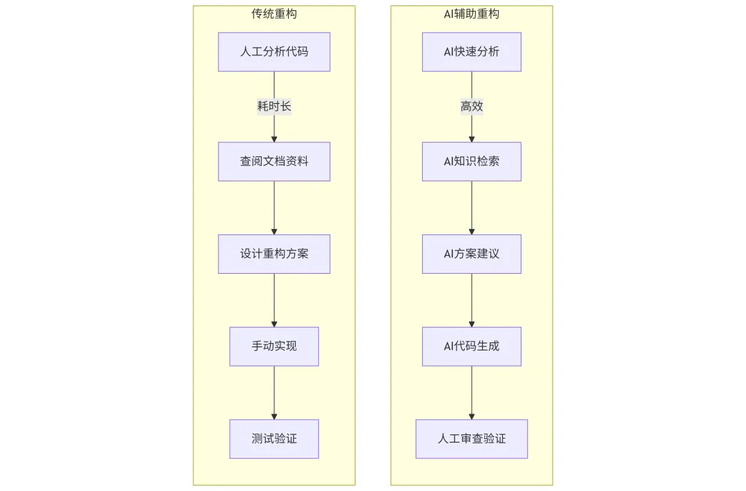 图1:传统重构与AI辅助重构流程对比