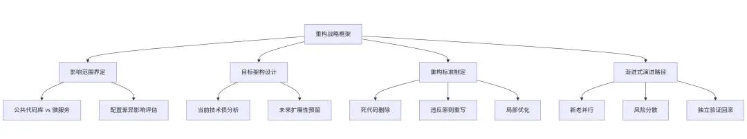 重构前必须建立清晰战略框架,界定后续技术决策边界和方向。核心目标是提升代码可维护性和可扩展性,降低新需求成本。