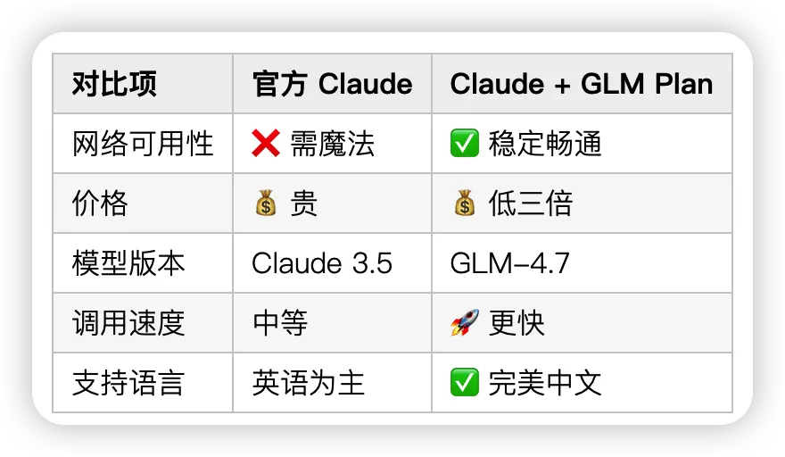 •Claude Code 安装检测•GLM 套餐接入•环境变量配置整个过程像安装向导一样丝滑👇