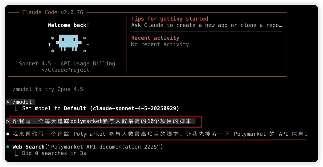 我们来看看 Claude Code 的真实实力,我给它下达指令: