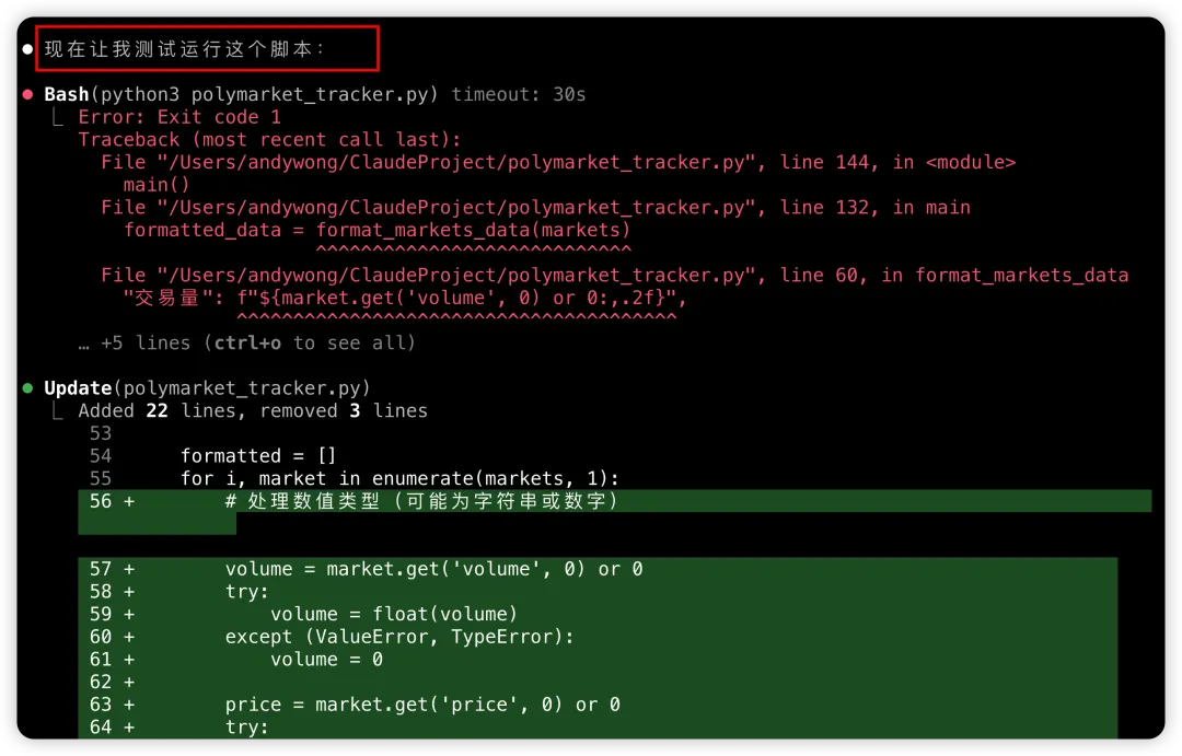整个过程只用了几分钟。 没有任何手动查 API、写逻辑、调 Bug 的环节。我们可以来用Python运行一下Claude Code写的代码,结果如下: