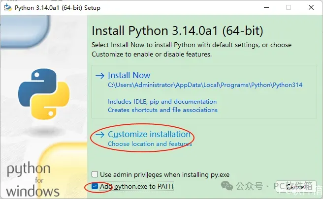 4.勾选【Add Python...PATH】点击【Customize installation】。