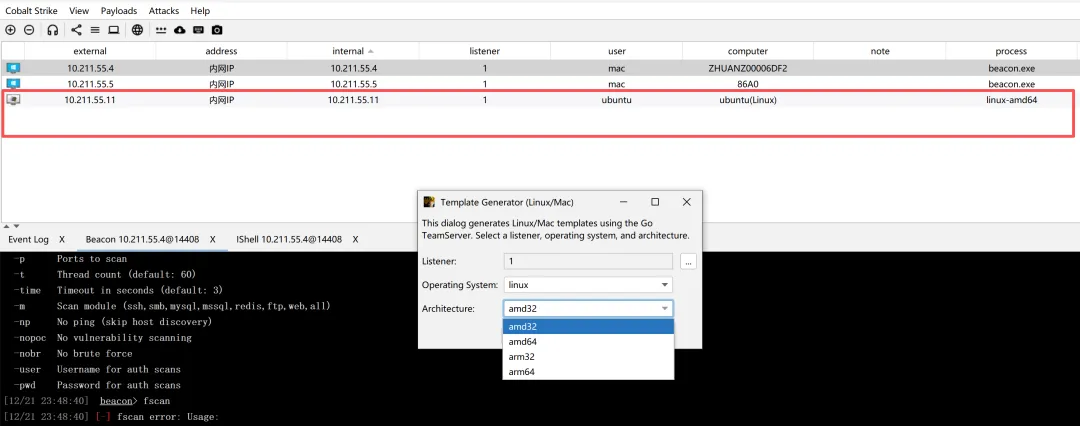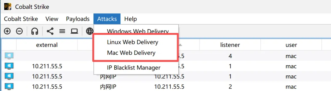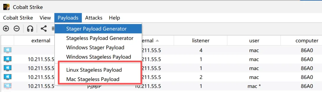 客户端环境:提供 Windows 、Linux、MacOS 生成上线