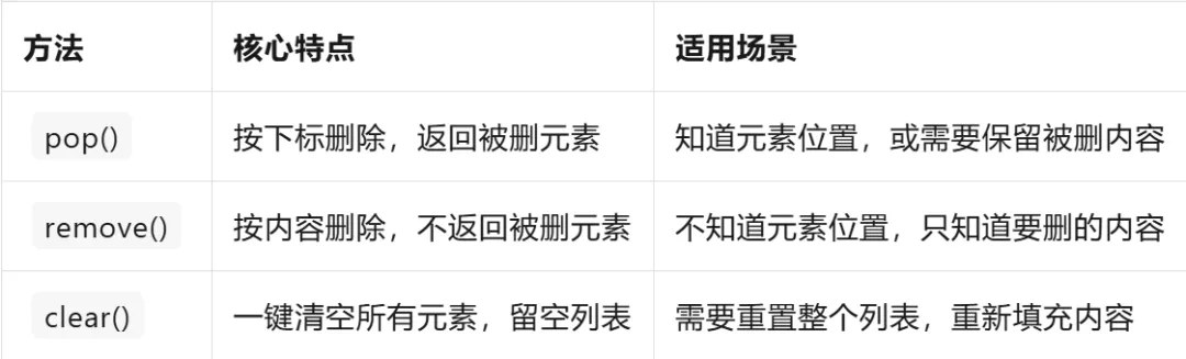 这时候就需要掌握列表的“删除”技能,Python给咱们准备了三种超实用的删除姿势,新手也能轻松上手,主打一个“想删啥就删啥,想咋删就咋删”,今天就给大家唠明白这三种删除方法。