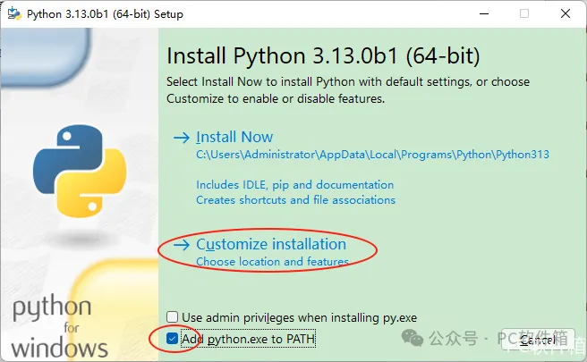 4.勾选【Add Python...PATH】点击【Customize installation】。