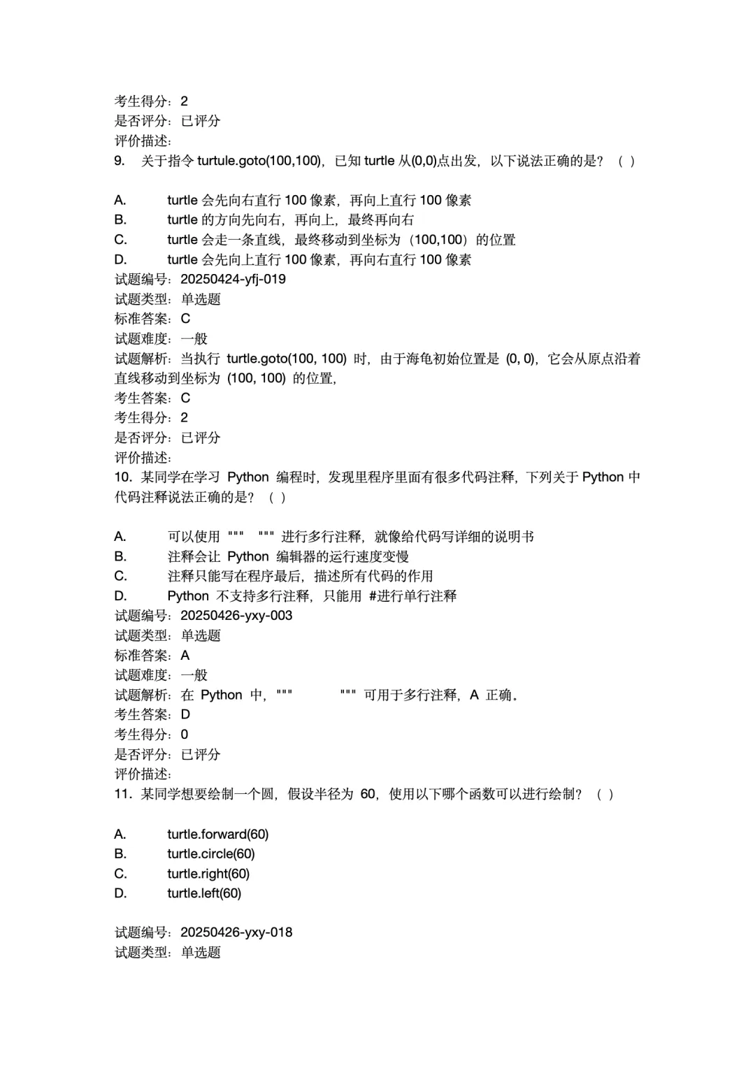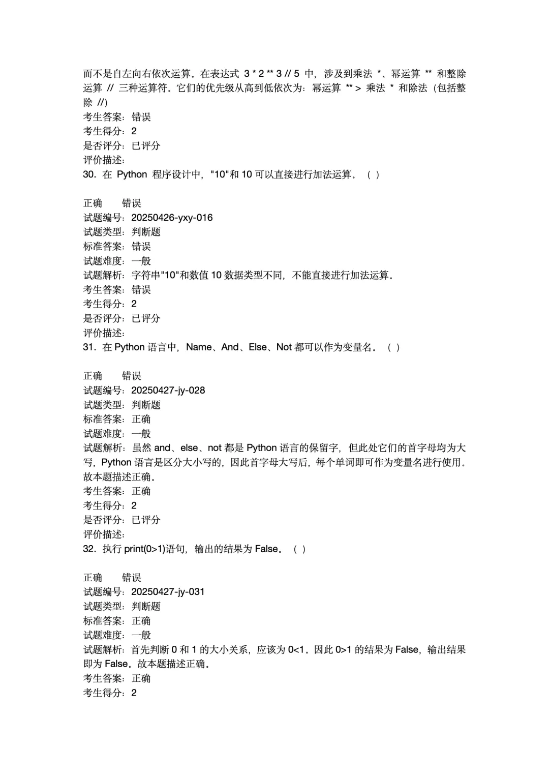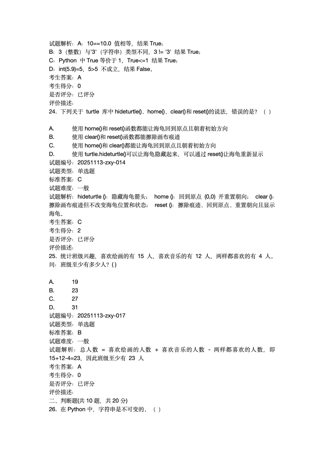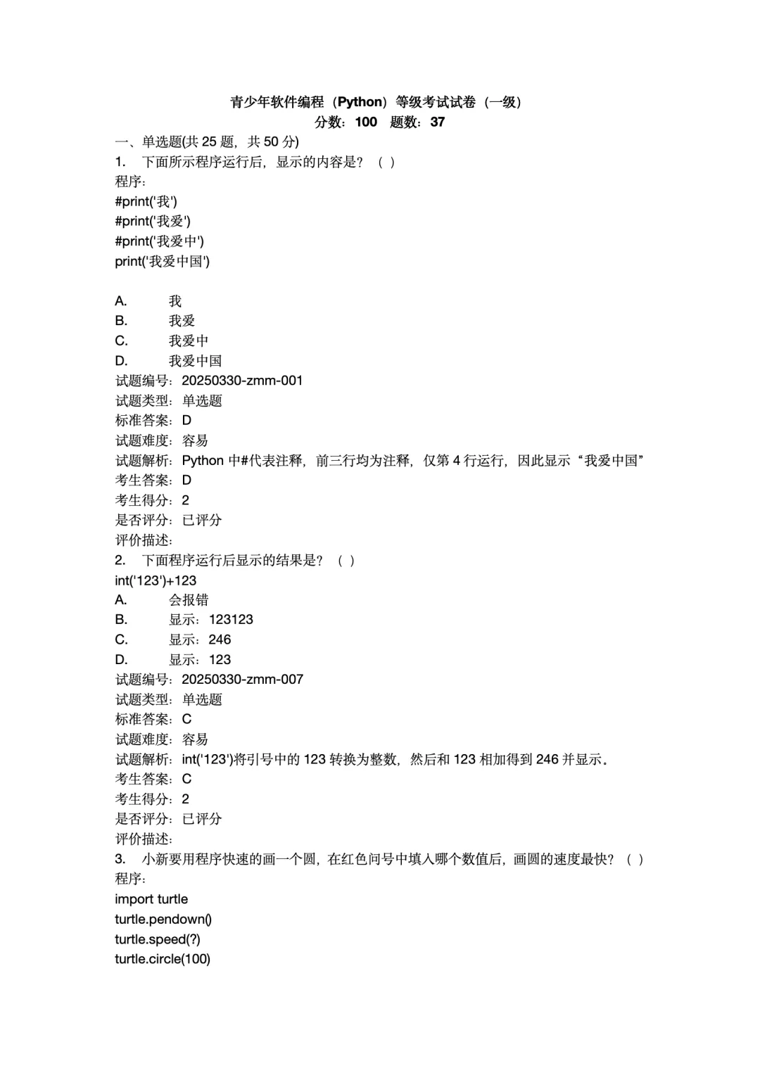 2025年12月Python编程等级考试 1级真题试卷-附答案。