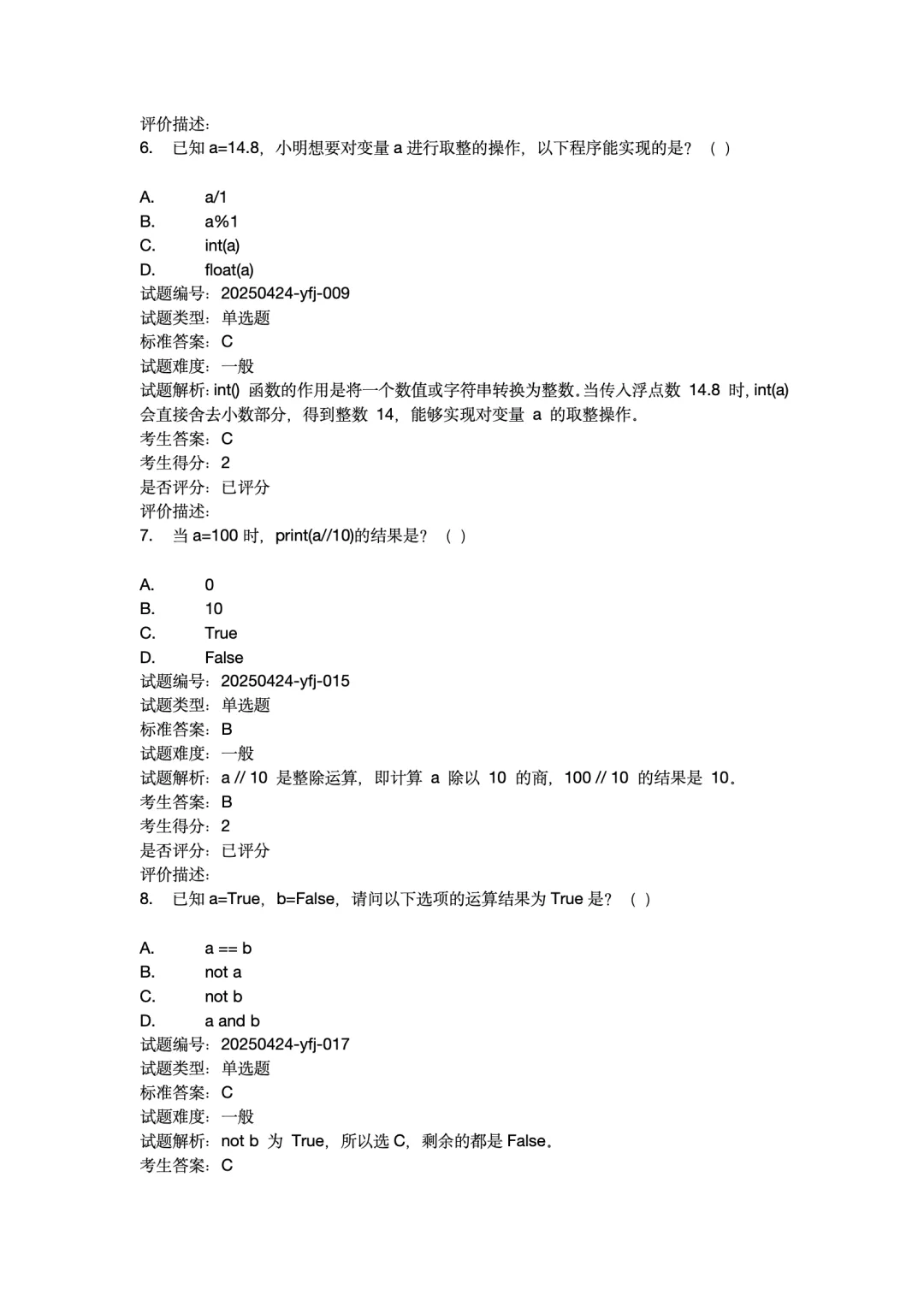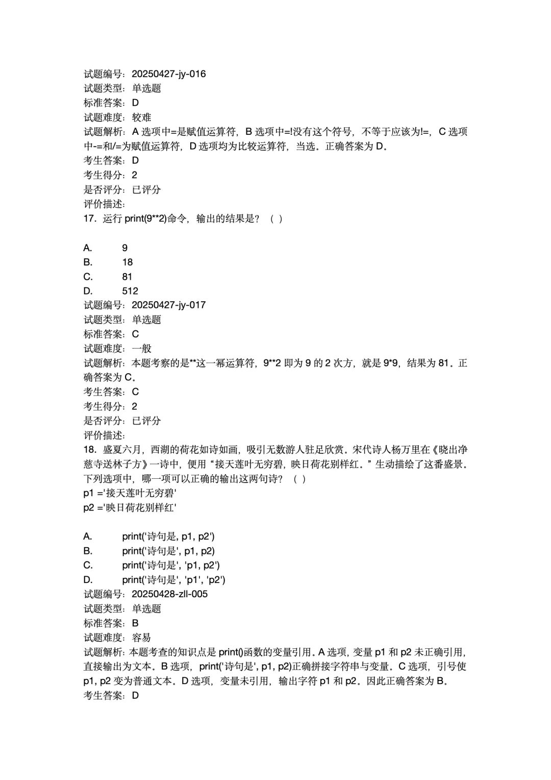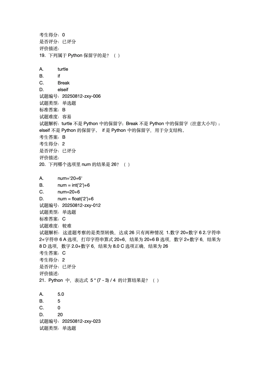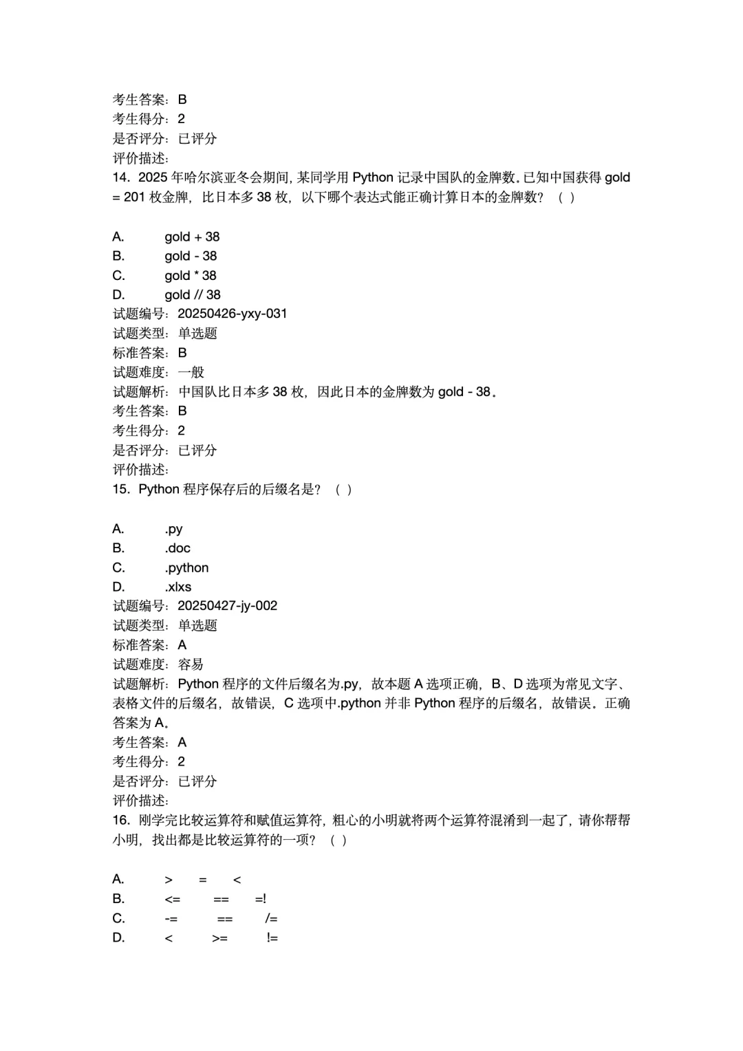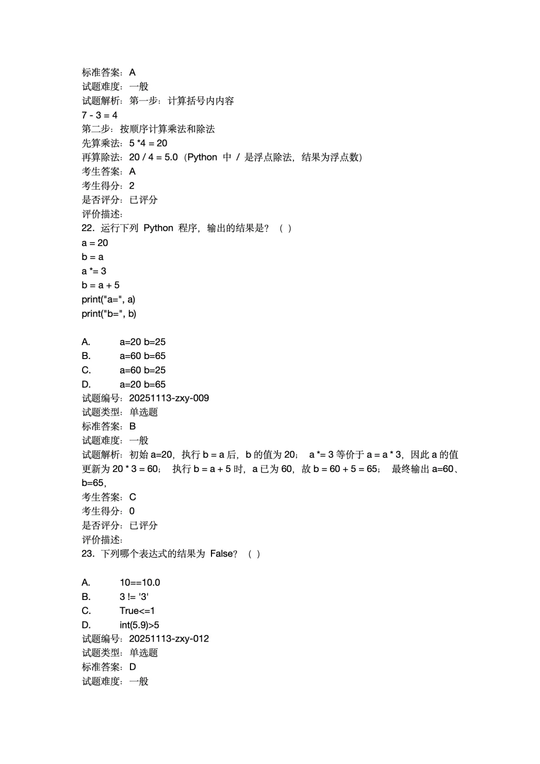 2025年12月Python编程等级考试 1级真题试卷-附答案。