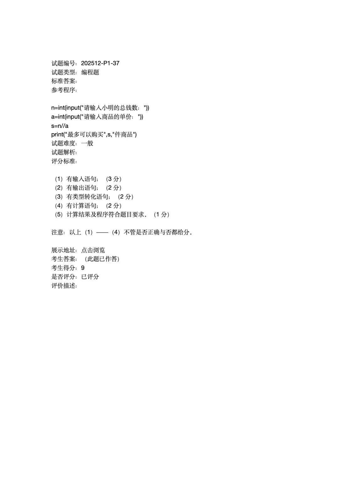 202512 电子学会 Python编程 1级真题及答案