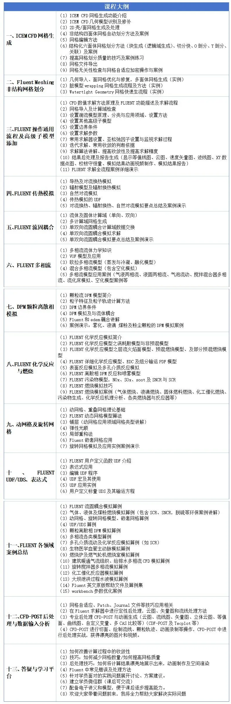 1、课程包括几何建模、网格划分和Fluent求解、后处理等全部过程;