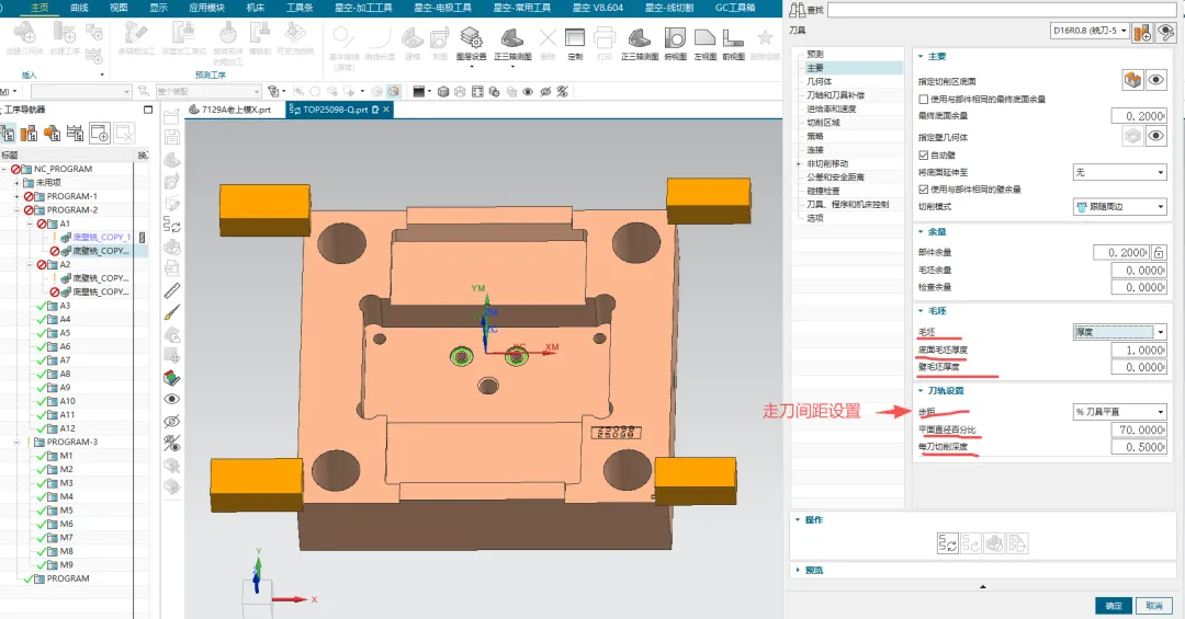 - 等高轮廓铣:精修侧壁时,设置恒定切削深度(0.05~0.2mm)。