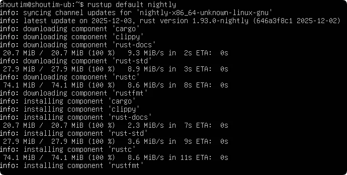 source $HOME/.cargo/env5、切换到 Nightly 工具链(笔者系统的Rust不支持微软这个项目所需的版本 Rust 2024 Edition 特性):