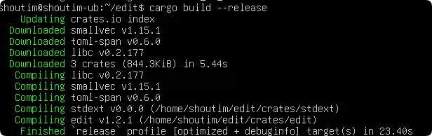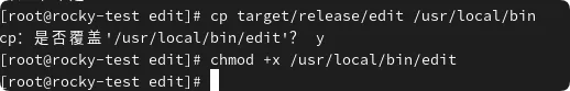sudo cp target/release/edit /usr/local/binsudo chmod +x /usr/local/bin/edit
