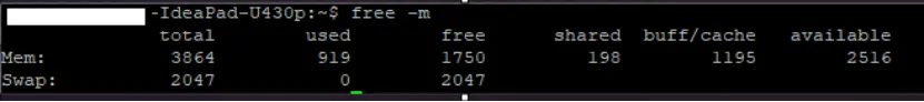 Buff 展示了缓冲区高速缓存的大小,而cache一列展示了页缓存大小,选项-m 把结果以MB为单位进行显示。