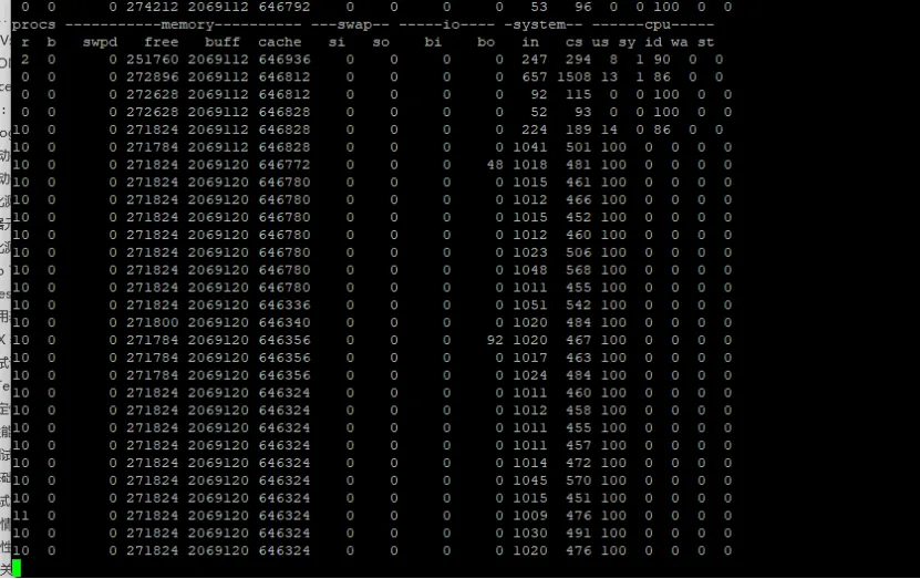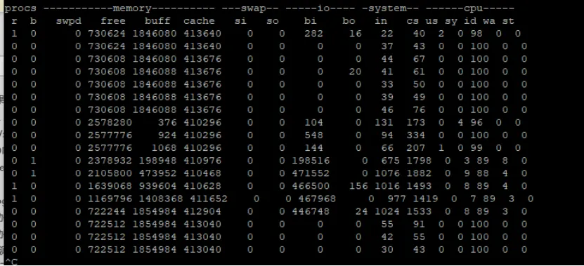 bi,bo和wa 几乎为0,说明没有IO的交换和IO等待。