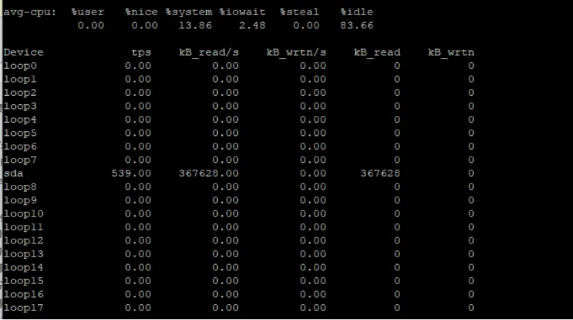 从上图我们可以看到,每秒读取的块数的kb数量367628kB