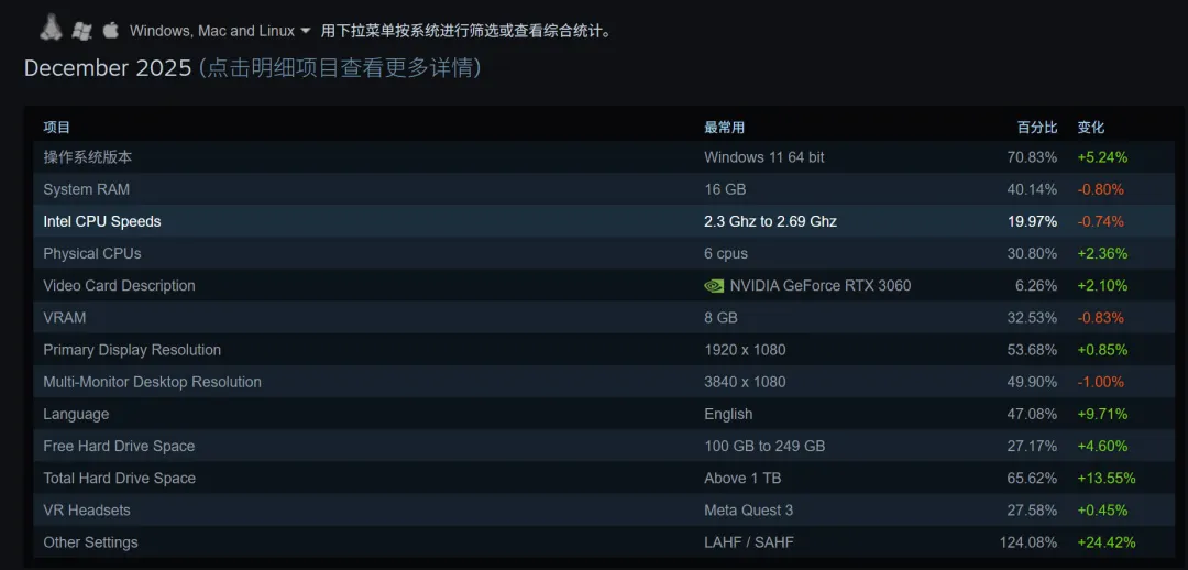 同时,在之前的调研中,RTX3060以6.53%的份额成为全球显卡使用率的榜首。
