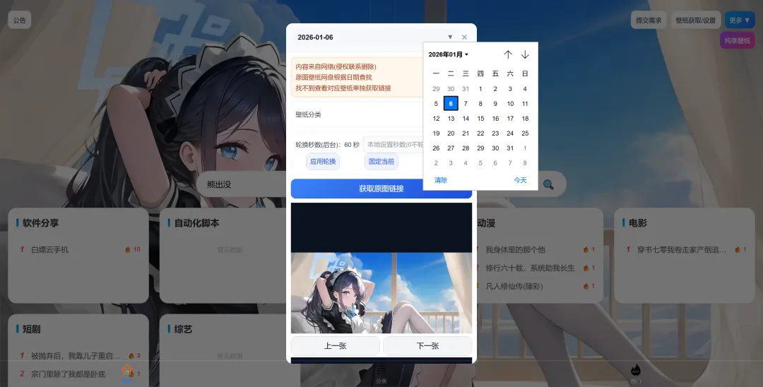 日期选择可以查看之前的壁纸,根据日期来选择吧(我尽量每天都更新,2026年1月6日起)