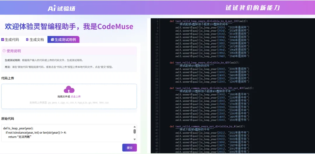 测试程序的有效性和特殊值,可以点击“一键生成测试用例”,通过模拟各种可能的输入(包括正常、边界、异常情况),检查程序输出是否符合预期,确保程序核心功能准确无误。