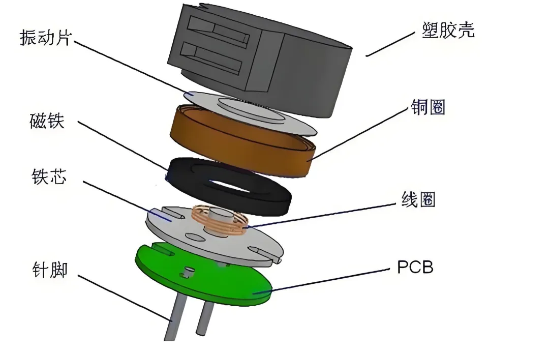 无源蜂鸣器是一种利用电磁感应现象的发声装置,其核心原理为线圈接入交变电流后形成的电磁铁与永磁铁相互作用,通过吸合或排斥推动振动膜振动发声。 将无源蜂鸣器的正极(通常标有"+"或较长的引脚)连接到 Arduino 的数字引脚 9;将无源蜂鸣器的负极连接到 GND。